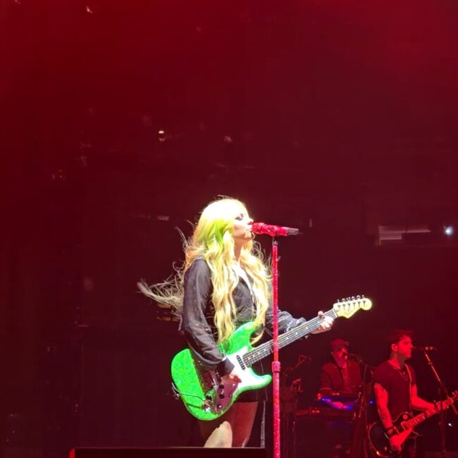 Avril didn’t waste time. The band launched into “Girlfriend” with punchy guitars and a chorus that instantly turned the pavilion into a